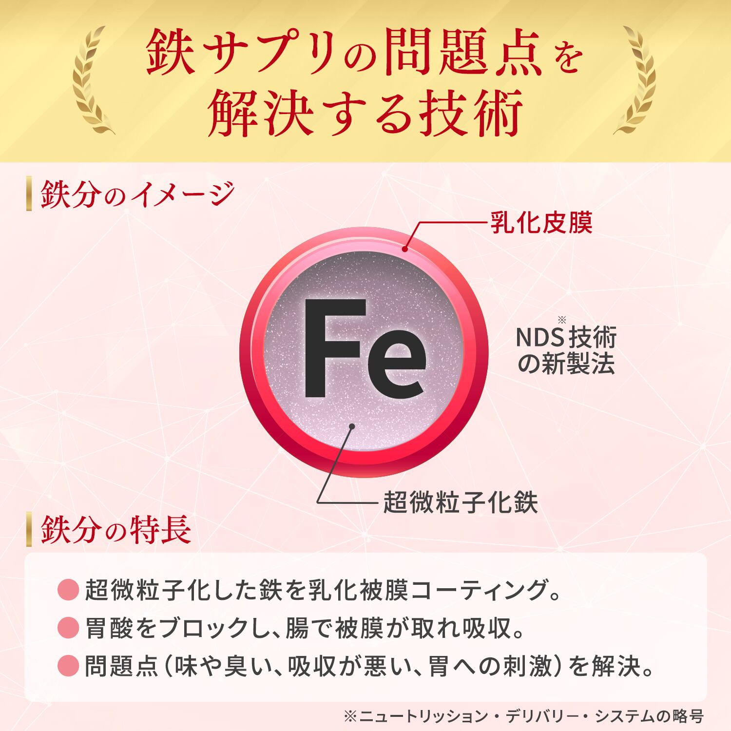 ◆鉄を超微細化し乳化被膜で包み、胃酸からブロック、腸で溶解吸収。